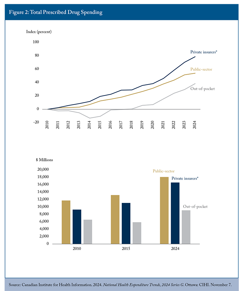 Several fundamental policy challenges emerged as central to the debate over pharmacare. The fiscal sustainability question proved particularly acute, with one participant noting that Ontario’s drug programs grow at 8 percent annually, with some components expanding at annual rates of 20 percent. This cost escalation raises serious questions about long-term affordability and the appropriate balance between public and private financing mechanisms.1212 The largest cost driver for public and private drug plans is increasing use of higher-cost drugs (drug-mix effect), followed by demographic change (population growth and aging) (Zhang 2024).