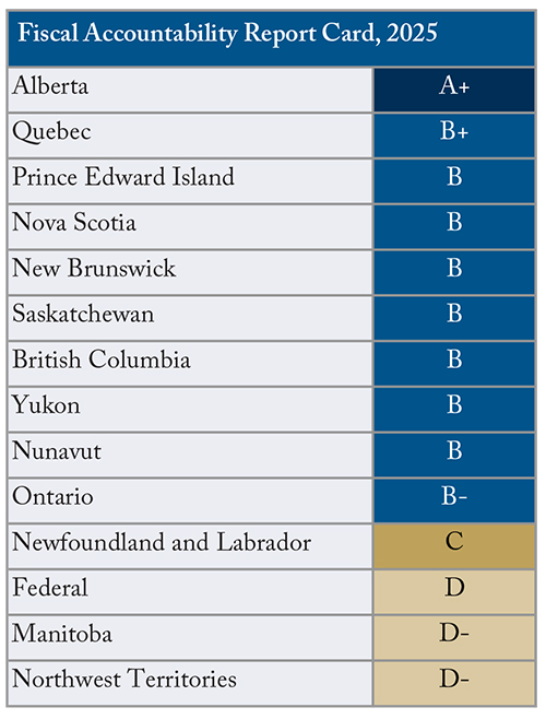 Looking ahead, the Institute’s preview of 2026 grades shows Alberta on track to retain its top position, while the federal government – which has not yet produced a budget for the 2025/26 fiscal year – is on track to receive an F.