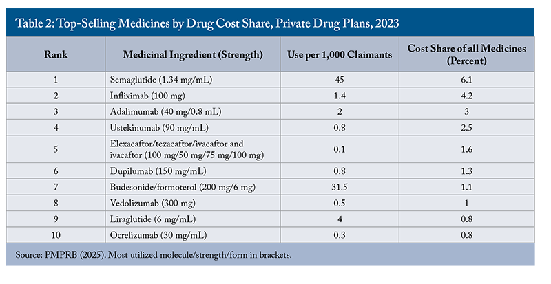 Patented Medicine Prices Review Board (PMPRB). 2025. Private Drug Plans in Canada: Expenditure Report, 2018–2023. National Prescription Drug Utilization Information System. Ottawa: Patented Medicine Prices Review Board. February. https://www.canada.ca/en/patented-medicine-prices-review/services/npduis/analytical-studies/private-drug-plans-2018-2023.html#app-c.