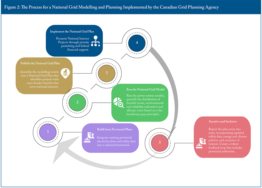 - The Canadian Grid Planning Council, composed of provincial planners and operators, would design a national planning process and oversee a modelling exercise, drawing on lessons from the European Network of Transmission System Operators for Electricity’s (ENTSO-E) Ten-Year Network Development Plan (TYNDP) and AEMO’s ISP.